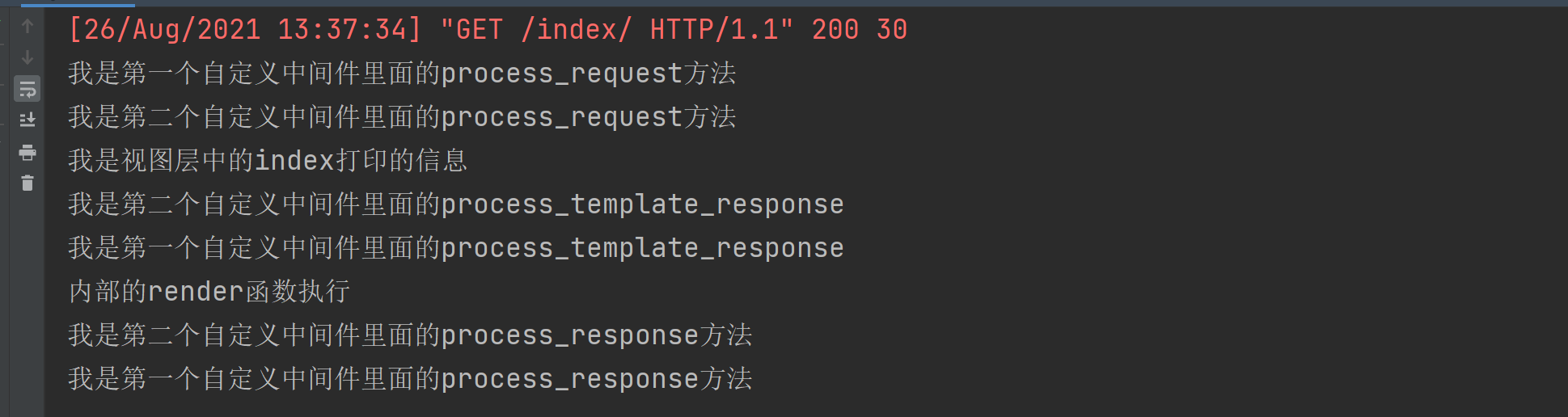 运行django项目,我们访问127.0.0.1:8000/index/,我们可以在后端看见如此结果。