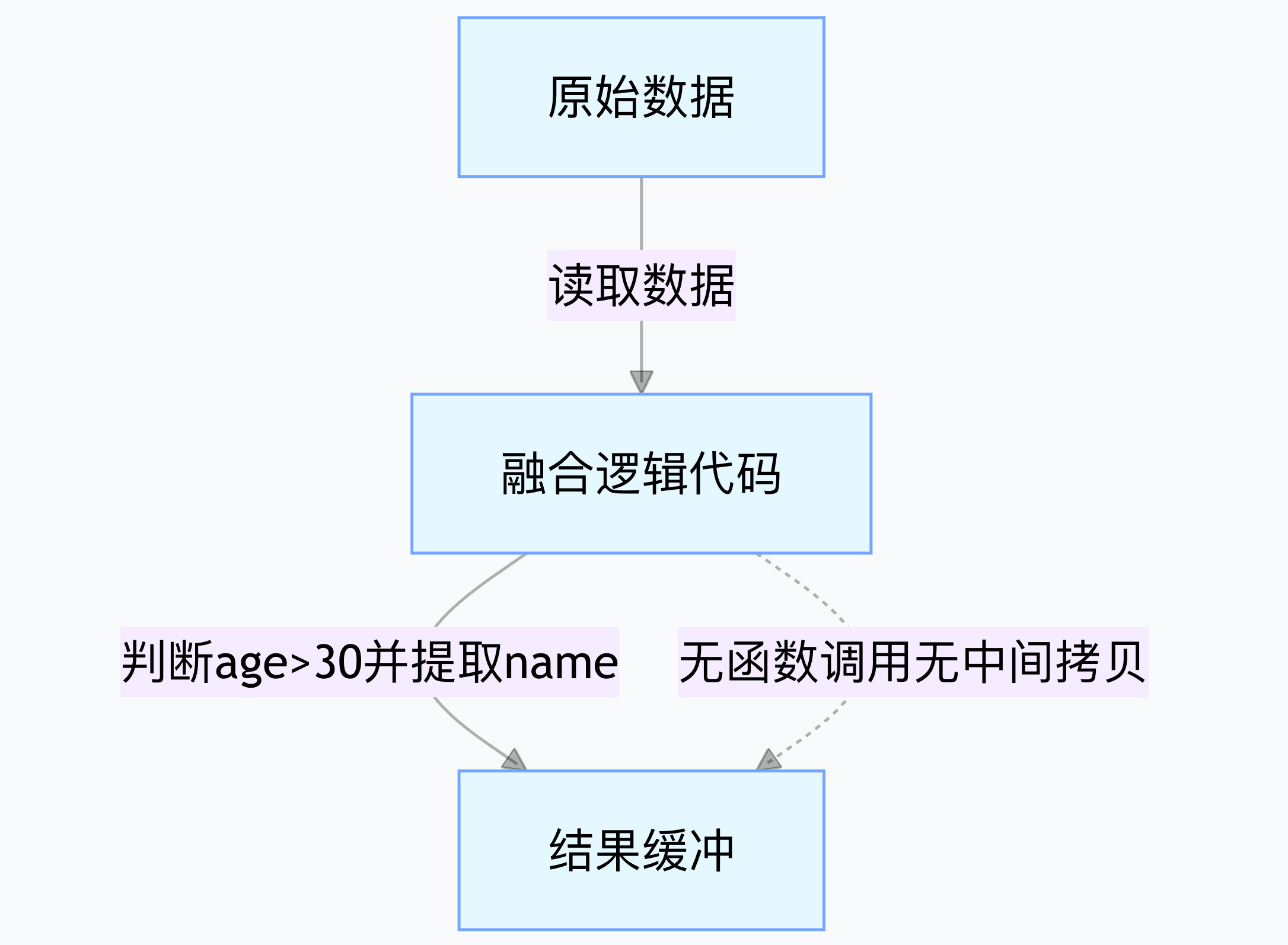 将 “过滤 + 投影” 逻辑融合为一段代码,直接编译执行: