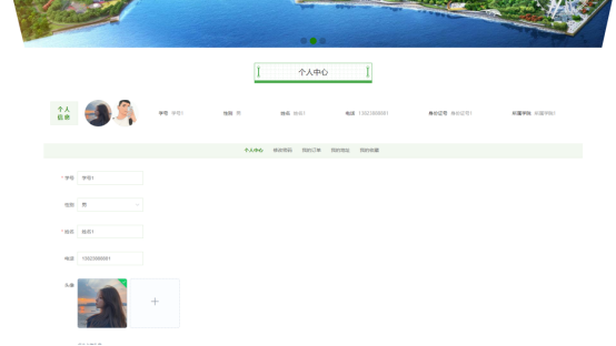 通过个人中心:在个人中心页面输入个人信息能够进行更新管理,还可能对修改密码、我的订单、我的地址、我的收藏进行操作;如图5-4所示: