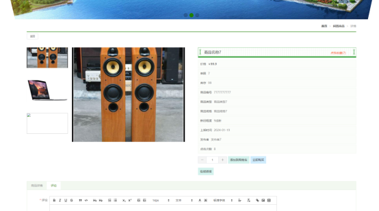 闲置商品:在闲置商品页面的输入栏中输入商品名称、价格进行查询,可以查看到闲置物品详细信息,并进行添加到购物车、立即购买、在线咨询、评论或收藏运行;闲置商品页面如图5-3所示: