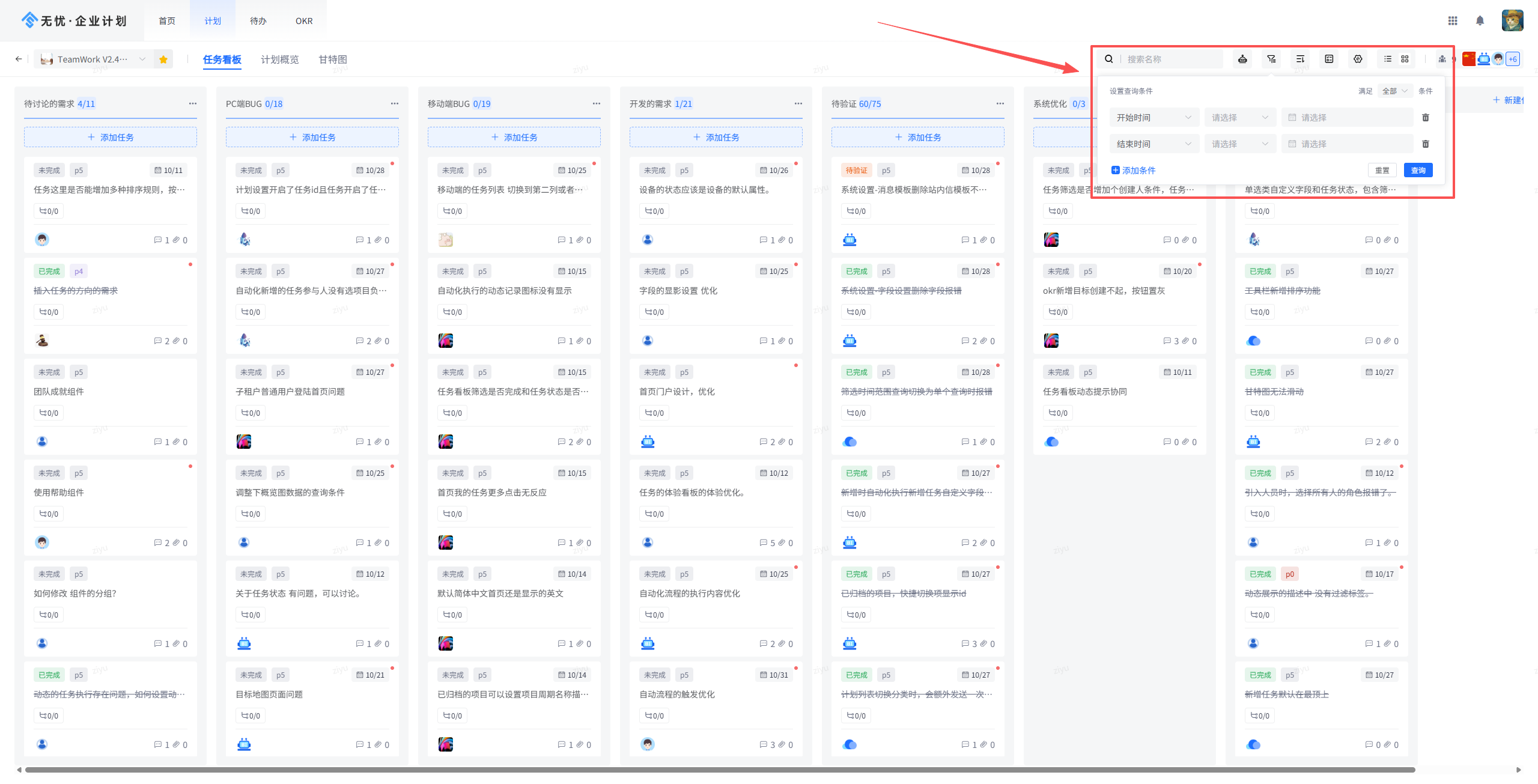 ✅ 无忧·企业计划:企业级项目管理器具,将企业从经营目标到个人执行逐级分解监控执行。适合各类团队,包括产品、研发、设计、市场、运营、销售、HR等;首要用于项目管理、任务管理、进度跟踪、过程管理等场景。
