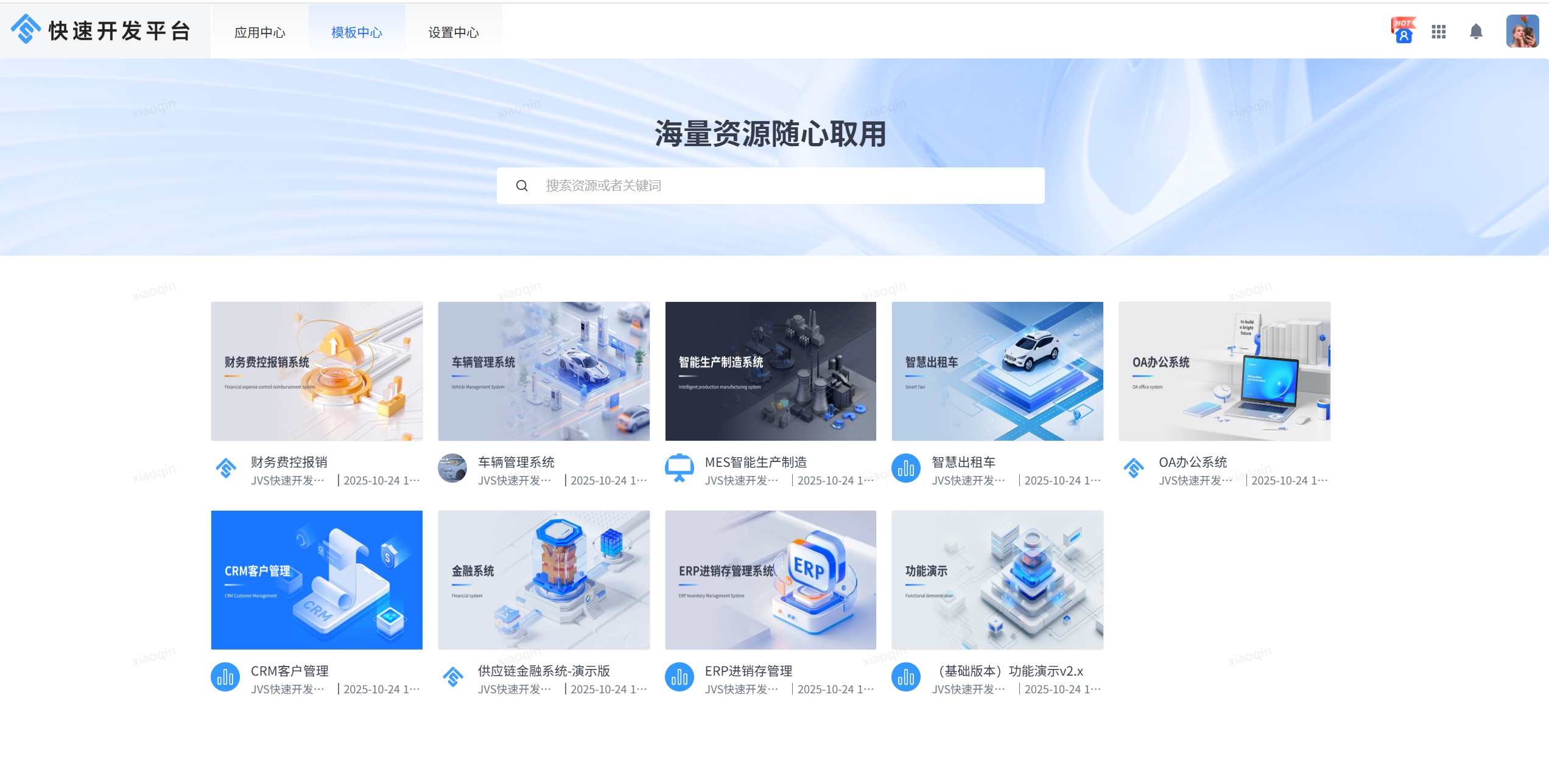 1、优化模板中心的界面布局以提升易用性,将模板中心升级为独立菜单以便快速访问,并调整模板的内容区块划分,使结构更清晰直观。