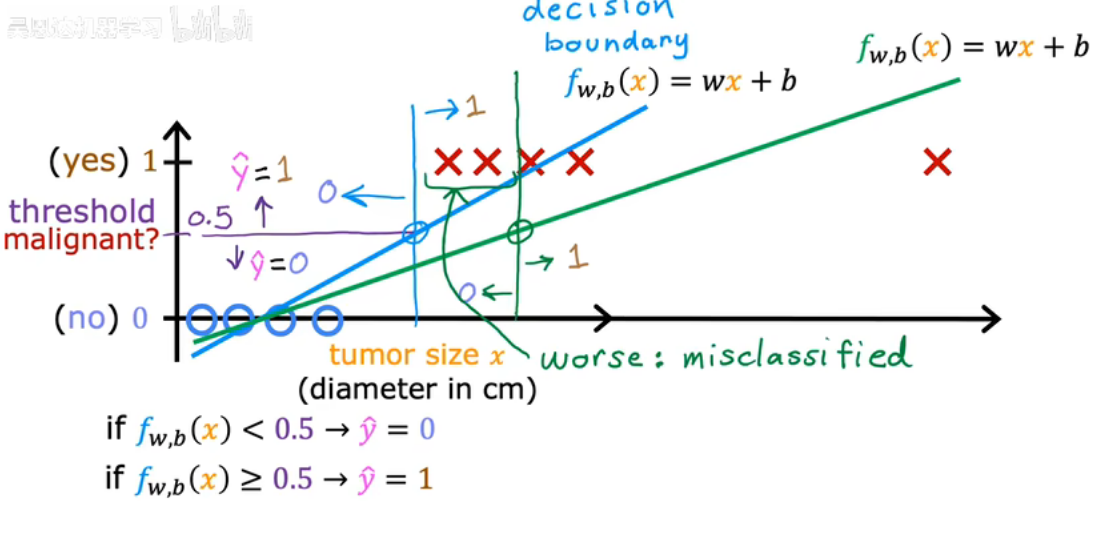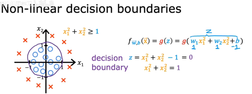 - 实质上,决策边界是模型输出概率为0.5的点集