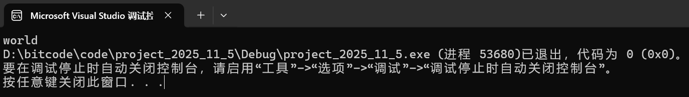 这个输出就证明是这片区域刚被初始化,所以才会输出这种结果,但是输出的原因是什么呢?我们继续逐步分析一下,我们先进入Test函数之后进入GetMemory函数,我们让str指向了hello world这个字符串的首元素地址,但是当我们退出这个函数的时候,函数栈帧就被销毁掉了。那么这个时候,如果说操作系统对这片空间进行覆盖,也就是上面的情况,我们就会有这种输出;而如果操作系统并未回收这片空间,我们就仍能得到原先的字符串。