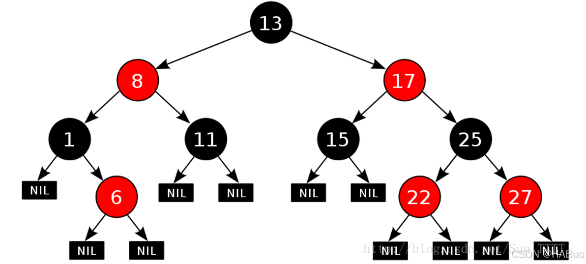 注意:在红黑树的定义中,叶子节点是指那些不存储数据的、空的(NIL)节点。通常我们在实现时,会用一个通用的、黑色的哨兵节点来代表所有NIL节点,这样可以节省空间并简化代码。