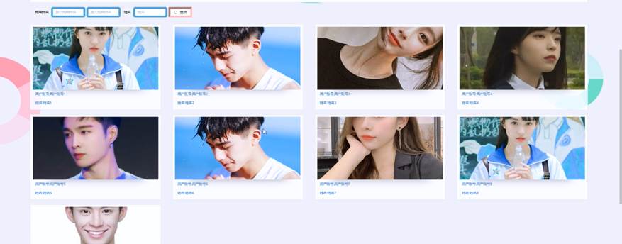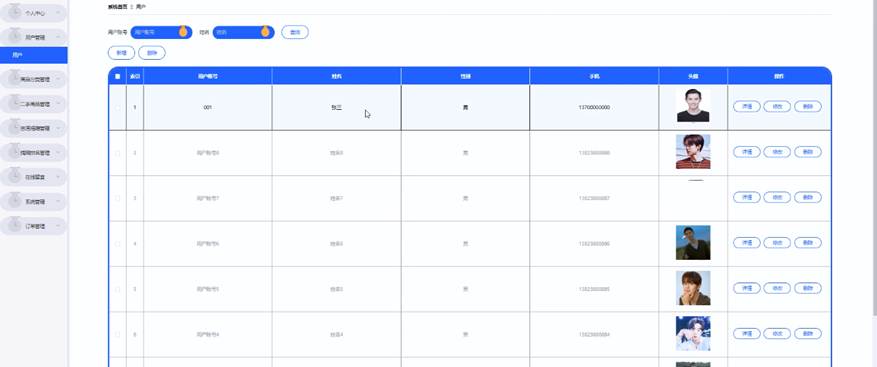 用户管理;在用户页面通过输用户账号、姓名进行查询,新增或删除用户详细信息,并进行详情,修改和删除等操作;如图5-3所示。