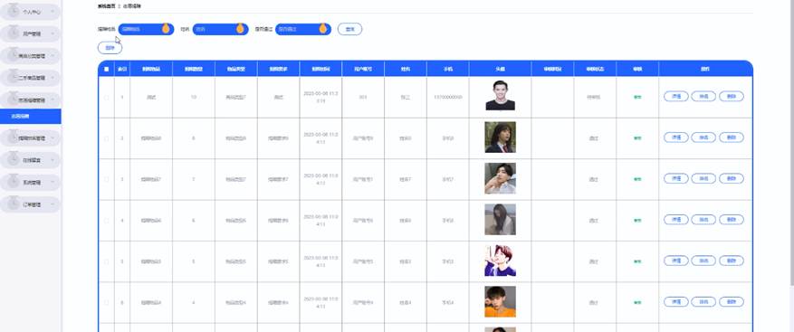 二手商品管理;在二手没品页面通过输入商品名称、商品类型、价格进行查询、新增或删除二手商品信息,并进行详情,修改或删除等操作;如图5-5所示。