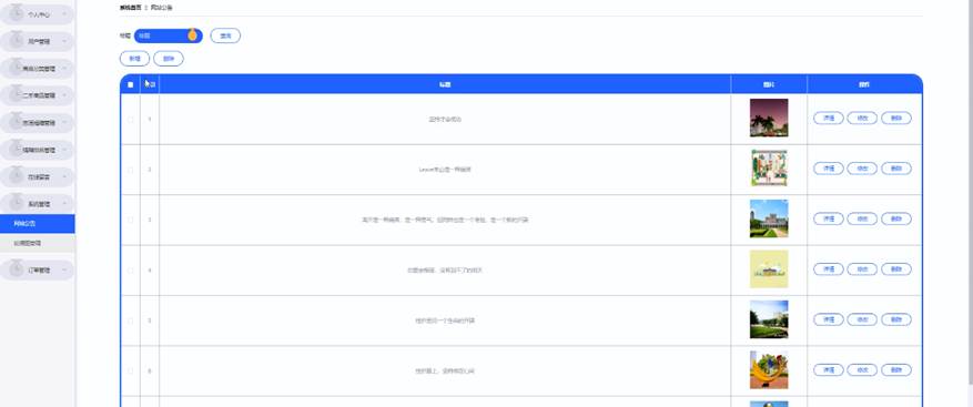 系统管理;在这里能够对网站公告、轮播图管理进行查询、修改或删除等操作;如图5-8所示。
