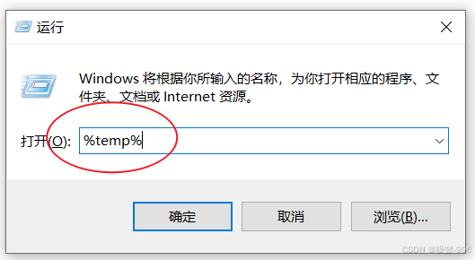 组合键 Win + R,输入 %temp%,回车,打开当前用户的临时文件夹,清空里面内容。