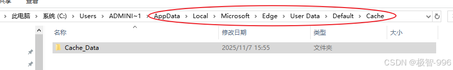 Edge 缓存:C:\Users<用户名>\AppData\Local\Microsoft\Edge\User Data\Default\Cache