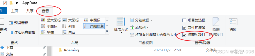 路径要点:C:\Users<你的用户名>\AppData\,下含 Roaming、Local、LocalLow。