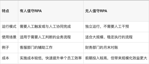 如果你的业务流程需要人工判断,你可以选择有人值守RPA。有人值守RPA需你手动触发或与机器人协同完成任务。它适合需要灵活处理的场景,比如客服辅助或信息核查。下面这张表格可以帮助你更好地理解两者的主要区别: