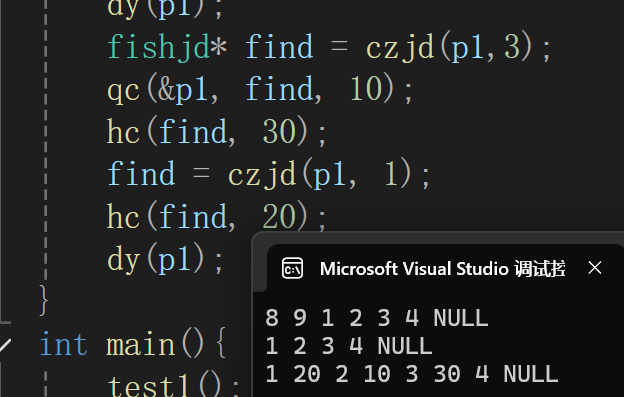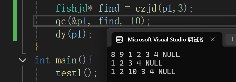 void hc(fishjd* pos, fishtp zhi) {//不得改变整个链表。传值即可
