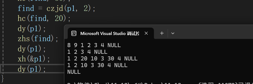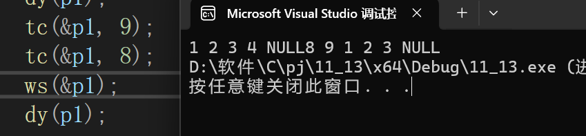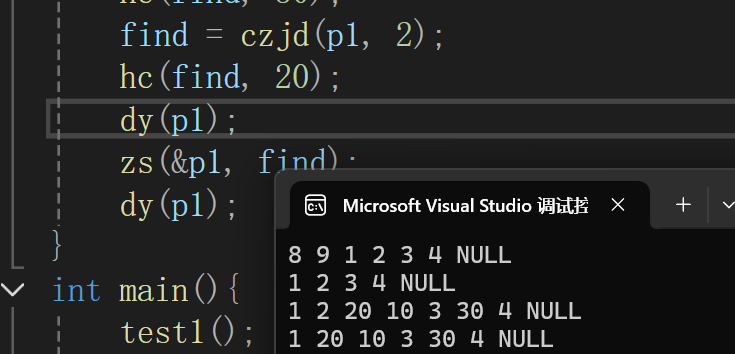 tc(ps, zhi);//直接调用头插