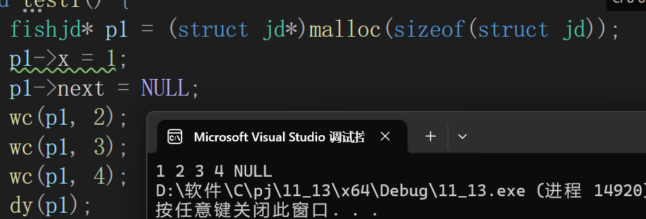 fishjd* pp = ps;//定义一个同类型的指针,指向要打印的链表。