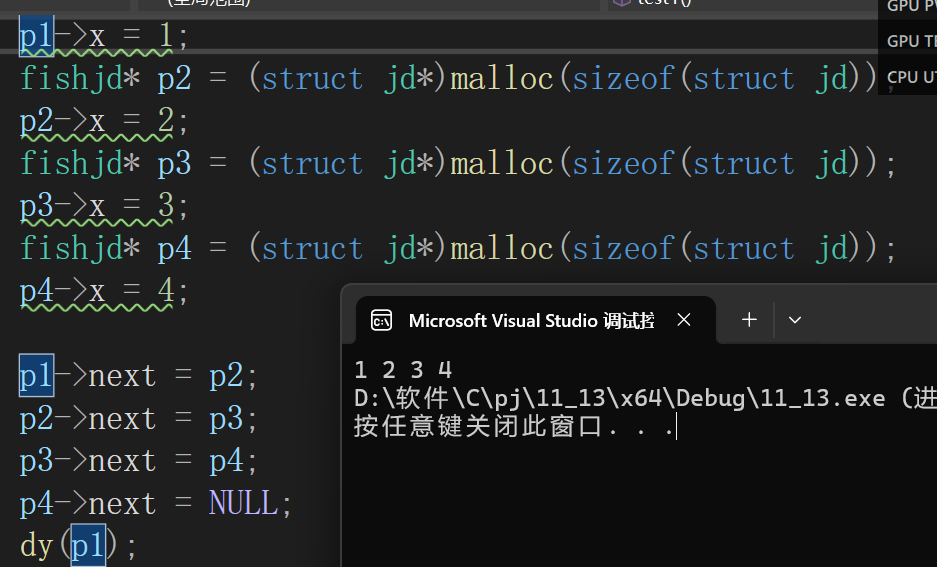 fishjd* p1 = (*ps)->next;//创建一个指向第二个节点的指针