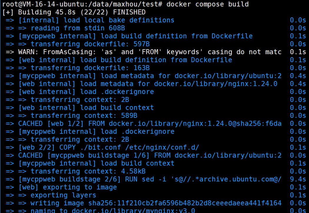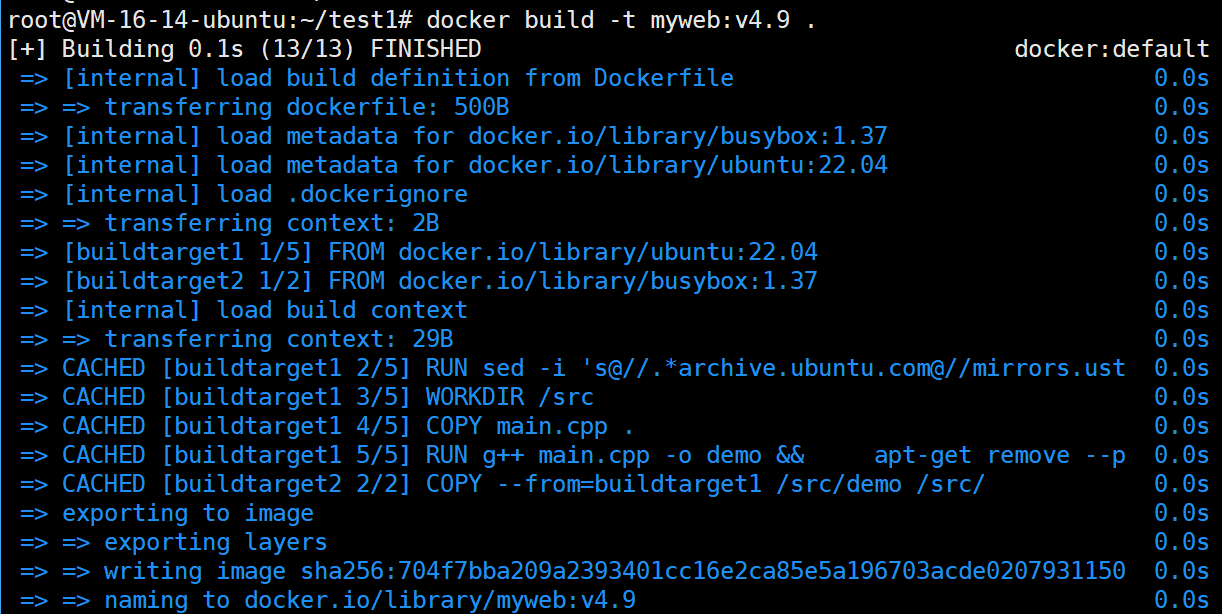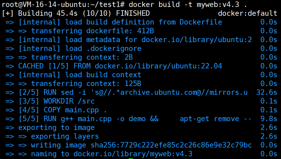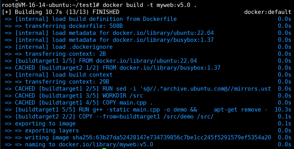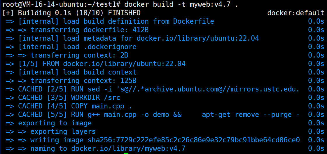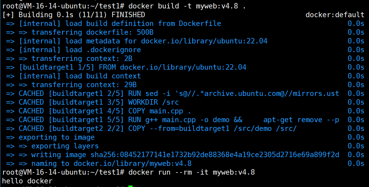注意我们需要把前面的sudo指令去掉,因为镜像中没有sudo这个指令