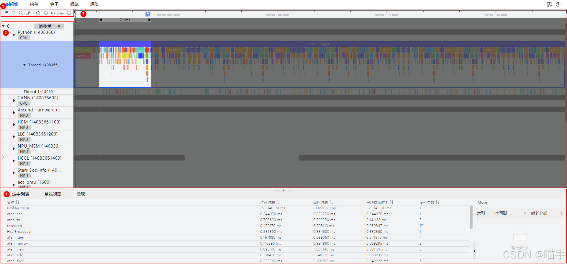 Profiler是CANN提供的强大性能分析工具。它不仅能采集算子级别的执行时间,还能分析内存使用、数据传输、算子调度等多个维度的信息。更重要的是,Profiler提供了丰富的可视化界面(Timeline、Operator、Memory等多种视图),让性能瓶颈一目了然。