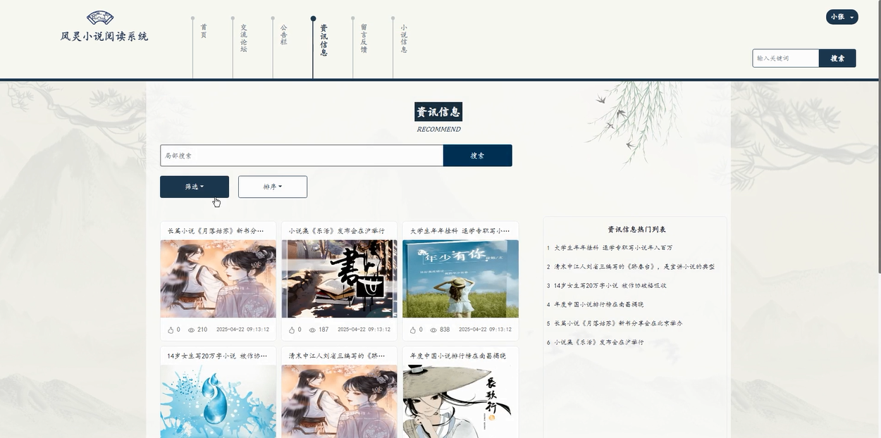 springboot风灵小说阅读系统