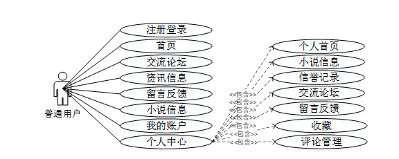 图2-1风灵小说阅读系统普通用户角色用例图