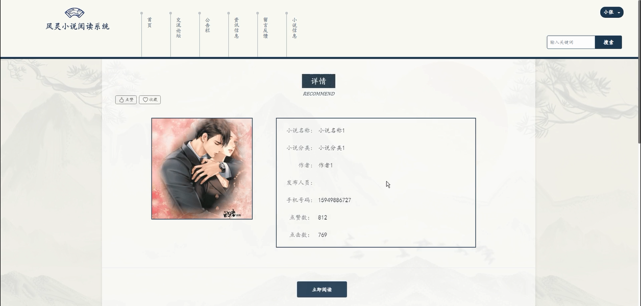 - 小说信息:用户可以查看小说的详细信息,还可以进行点赞、收藏、评论等互动操作。若对某本小说感兴趣,用户可选择立即阅读,享受在线阅读的便捷体验。