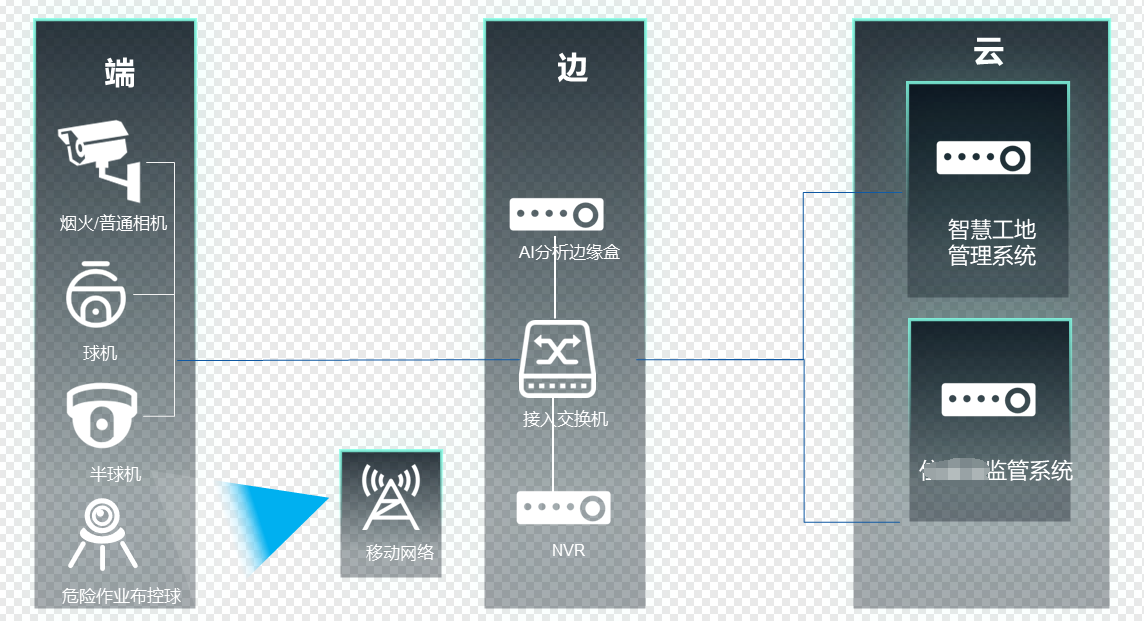 本方案采用分布式架构,将相机和边缘分析设备部署在铁路沿线关键位置,通过有线或无线网络将视频数据传输至监控中心。这种分布式架构提高了监控环境的灵活性和可扩展性,便于根据实际需求进行设备增减和布局调整。同时,分布式架构还降低了单点故障的风险,提高了监控环境的稳定性和可靠性。