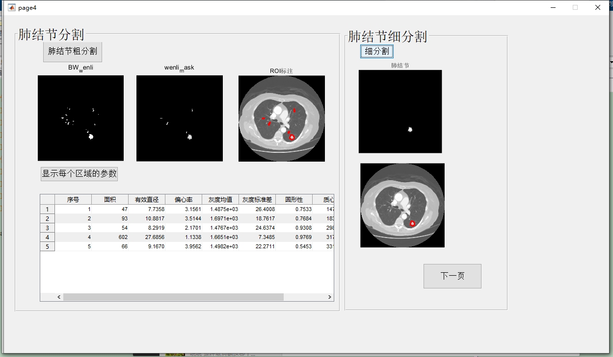 在肺质分割后,进行特征提取,通过计算灰度特征、形态学特征来分割出肺结节。