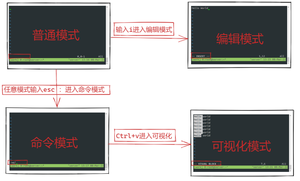 普通模式一般用于浏览文件,包括复制,粘贴,删除等操作