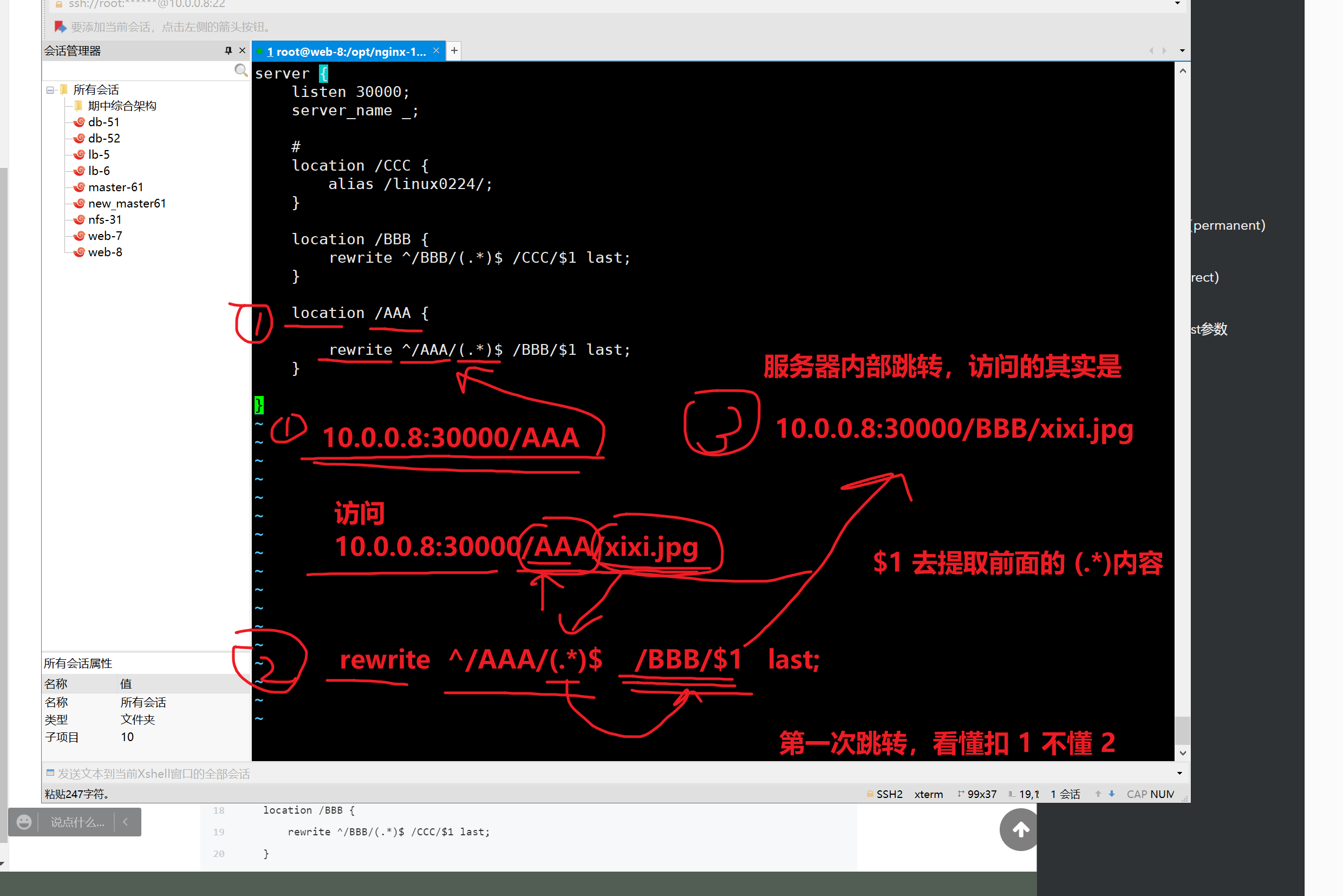 2. rewrite ^/AAA/(.*)$ 中的提取数据赚到了 /BBB/$1 last;