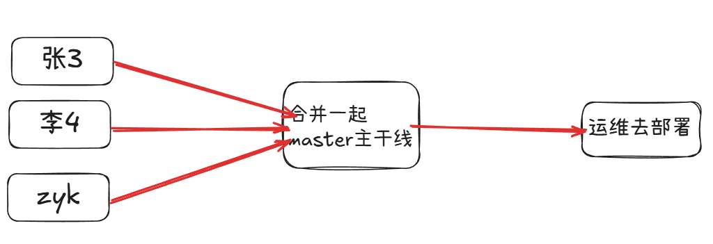 - 最后把所有人的代码集中到一个系统中。最后上线