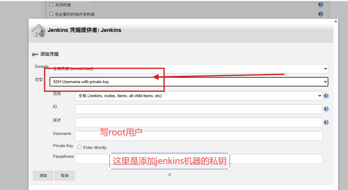 2. 去jenkins的job中,添加密钥的认证的方式