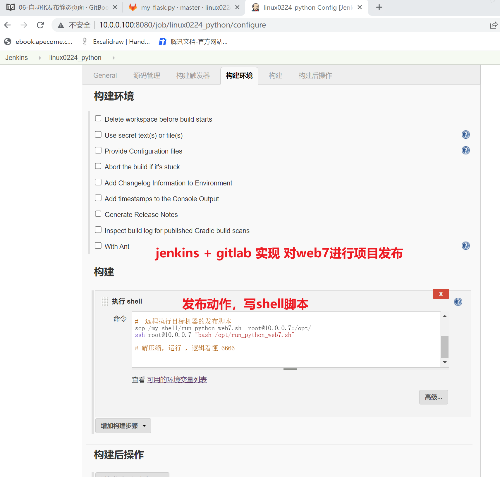 1. jenkins上的构建shell配置