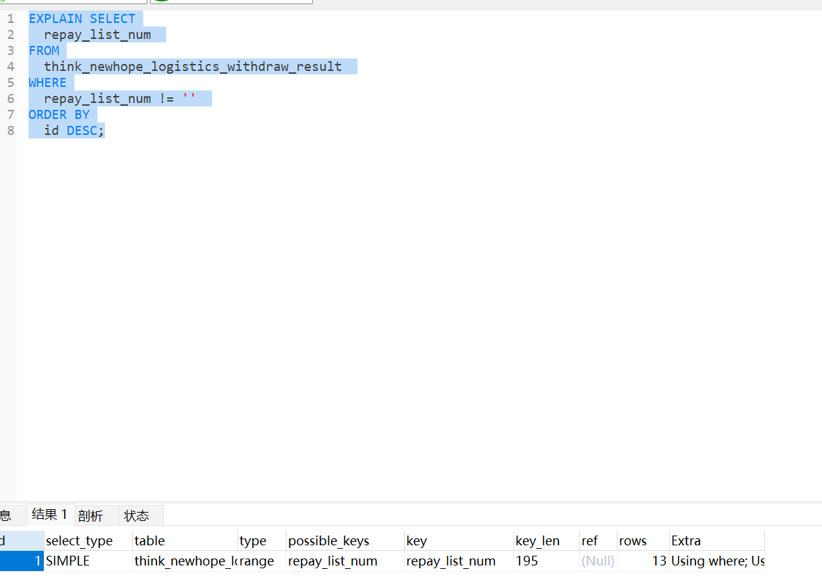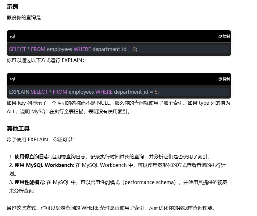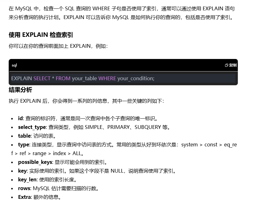 在使用数据库查询的时候,怎么判断我们的查询语句where条件是否走了索引?