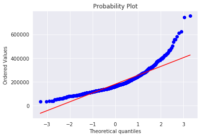 通过数据分布可视化,发现数据在许多特征上存在偏态性。以训练集目标变量SalePrice为例,数据分布及QQ图如下图所示: