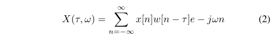 有几种方法可以在频谱图表示中转换音频,即傅里叶变换、滤波器组等。一些研究,如[5]、[1]表明,使用mel尺度的频谱图在视觉域模型中表现更好。请注意,本研究将使用短时傅里叶变换方法生成对数/梅尔尺度的光谱图。作为第一步,需要借助方程式2计算短时傅里叶变换。
