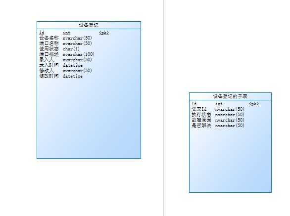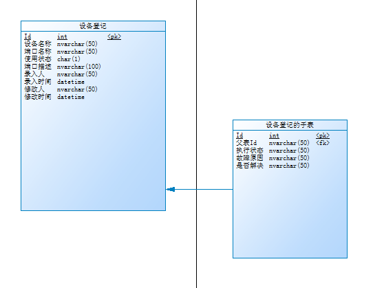 因为我们的需求是创建父子表,所以我们还要创建一张子表,创建子表和父表是一样的步骤,如图创建好的字表: