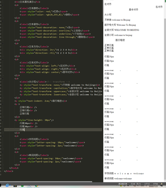 文本对齐:text-align