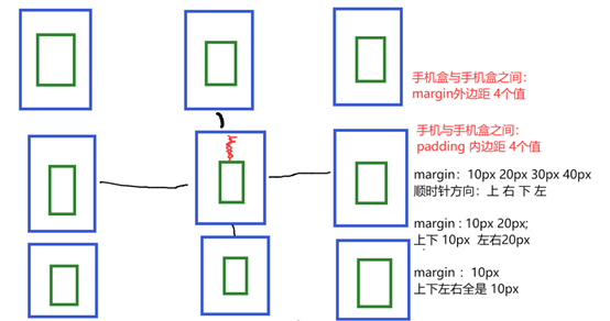 (1) margin:10px 表示上右下左间距都是10px