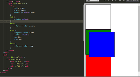 (3) Absolute是相对于父容器进行偏移,注意父容器必须有定位,即非默认(static)定位方式,否则会一直往上追溯,直到页面