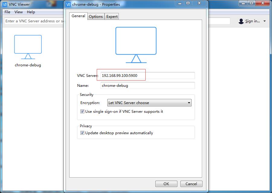 如图所示,vnc server 输入docker的ip加上容器暴露出来的接口5900