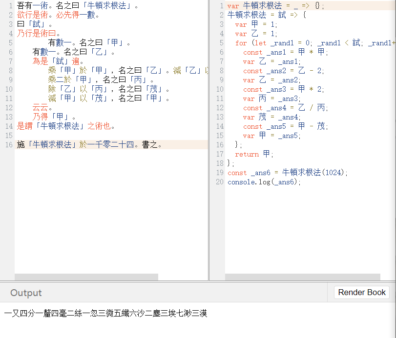 这个不就是传说中的文言文编程吗?图方便可以找一个在线文言文编程的网站,运行结果: