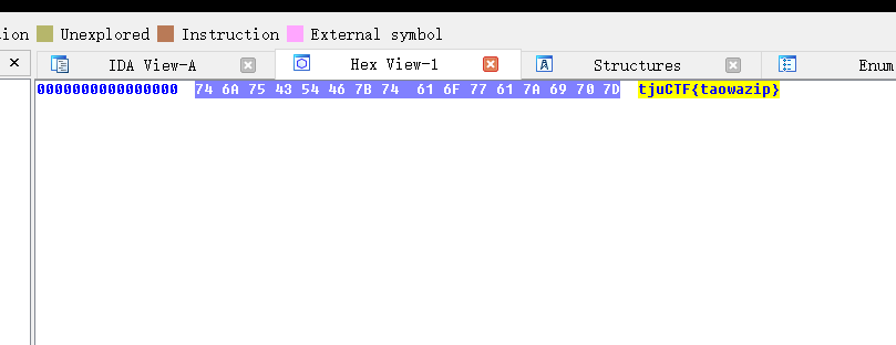 题目给了一个链接,进入下载压缩包easy_re.zip,利用IDA工具查看,结果可以直接看到在十六进制格式显示的窗口: