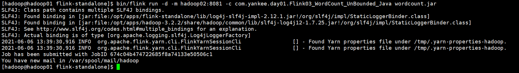 -c com.yankee.day01.Flink03_WordCount_UnBounded_Java wordcount.jar