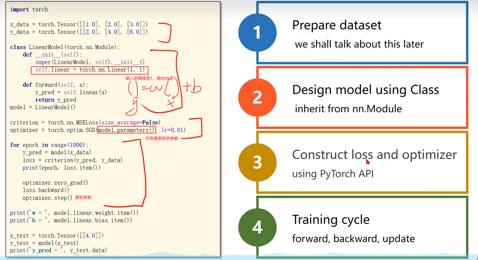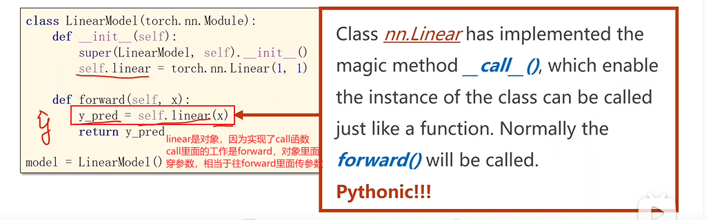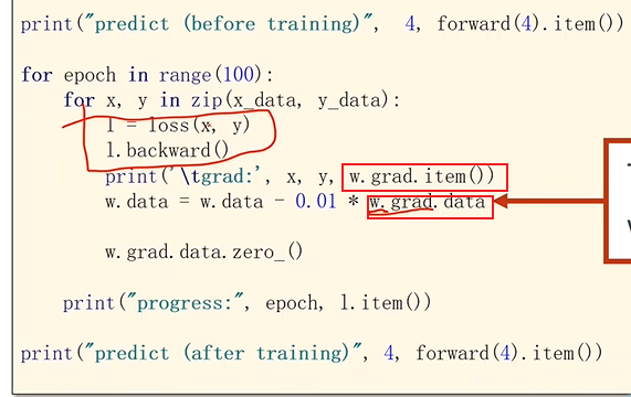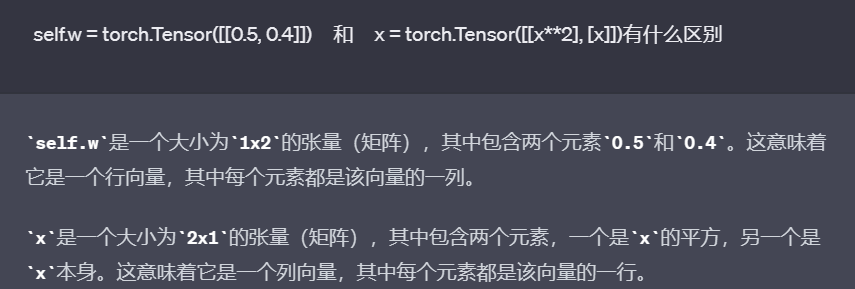 out = self.w.mm(x) # mm表示向量相乘metrix multiple 1*2 与 2*1 相乘