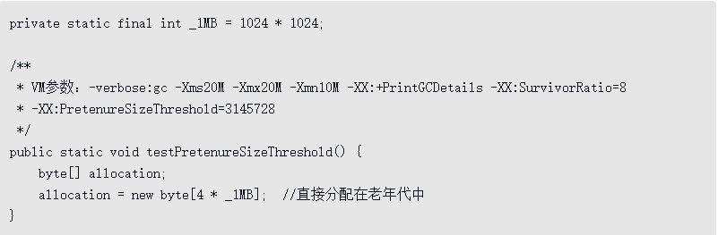 代码清单3-8 大对象直接进入老年代