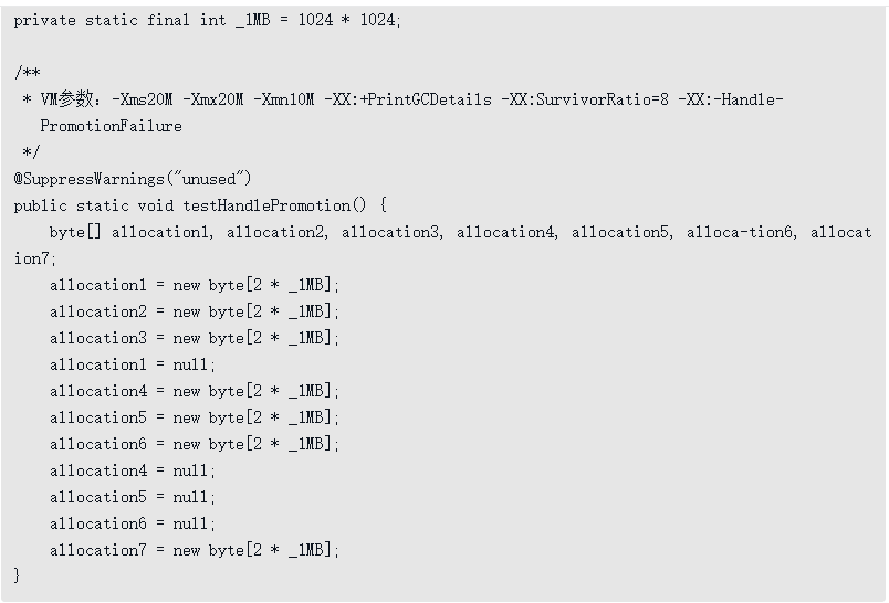以-XX:HandlePromotionFailure=true参数来运行的结果: