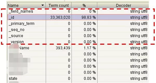 通过Luke工具查看ES的lucene文件如下,主要增加了_id和_source字段:
