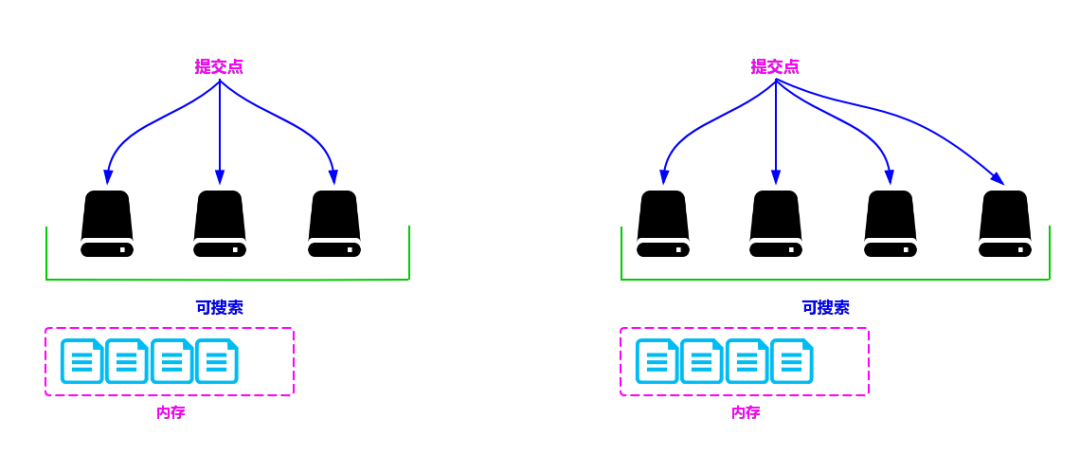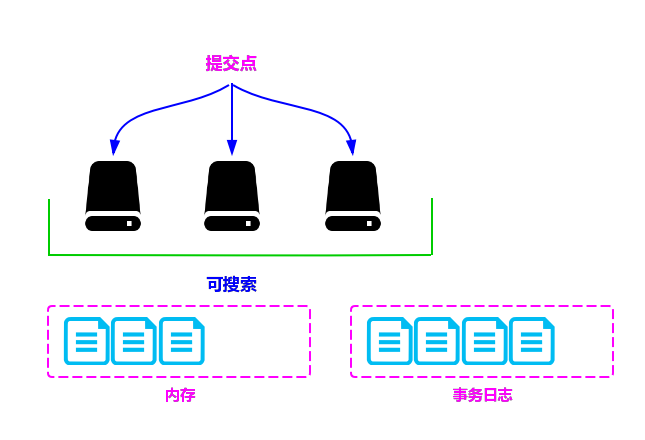 一个段一旦拥有了提交点,就说明这个段只有读的权限,失去了写的权限;相反,当段在内存中时,就只有写数据的权限,而不具备读数据的权限,所以也就不能被检索了。