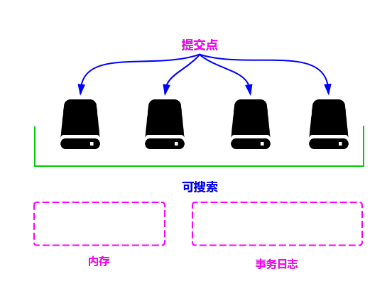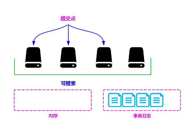 在达到出触发条件以后,会将内存中缓存的数据一次性写入磁盘中,并生成提交点。