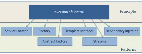 IOC 是一个原则,而不是一个模式,以下模式(但不限于)实现了IoC原则。
